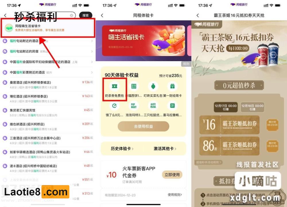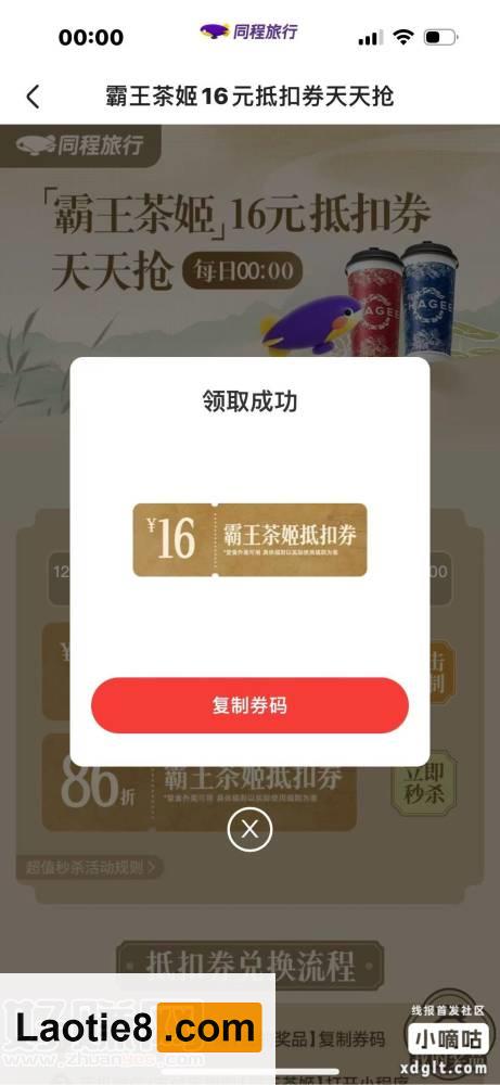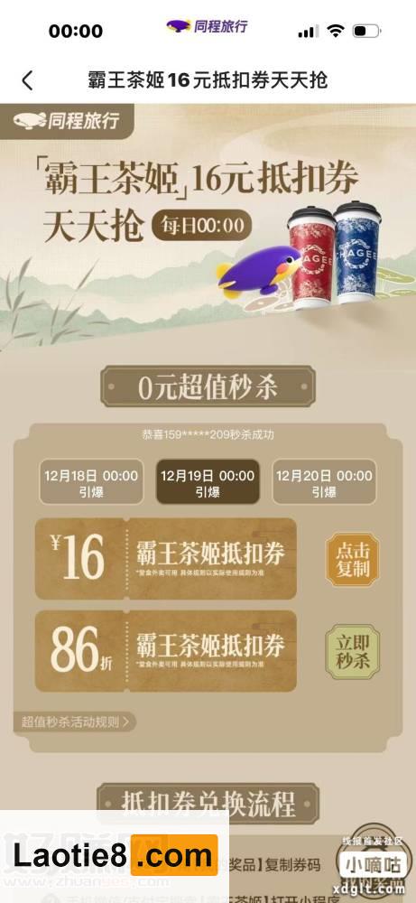 每天0点抢霸王茶姬免单券 持家老铁 • 2024年12月19日 pm9:15 • 时时线报 • 阅读 5 淘宝捡漏群 点击这里加入本站QQ群、线报群、微信群一起交流参加各种活动项目和线报 【每天0点抢霸王茶姬免单券】同程APP搜索“秒杀福利”->直接领生活省钱卡,新客有火车票30-10亓券,12月17日~31日每天0点抢100份霸王茶姬免单券 点此加入老铁吧线报推送QQ群:1004763262 点击这里加入本站QQ群、线报群、微信群一起交流参加各种活动项目和线报 京东神车bug群