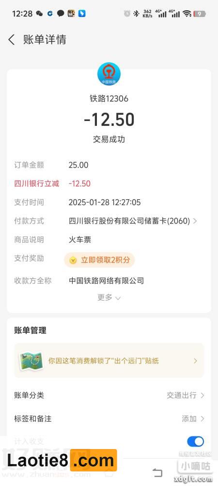 四川银行半价买火车票,可以提前订上回去的票了,不知道多少封顶 持家老铁 • 2025年1月28日 pm12:46 • 时时线报 • 阅读 7 淘宝捡漏群 点击这里加入本站QQ群、线报群、微信群一起交流参加各种活动项目和线报 四川银行半价买火车票,可以提前订上回去的票了,不知道多少封顶,也可以接单应该有润 点此加入老铁吧线报推送QQ群:1004763262 点击这里加入本站QQ群、线报群、微信群一起交流参加各种活动项目和线报 京东神车bug群