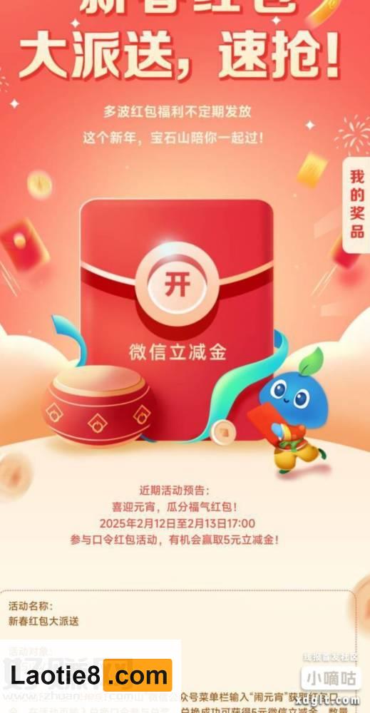 宝石山app首页横幅5元微信立减金,口令是元宵节快乐,现在v 持家老铁 • 2025年2月12日 am11:37 • 时时线报 • 阅读 12 淘宝捡漏群 点击这里加入本站QQ群、线报群、微信群一起交流参加各种活动项目和线报 宝石山app首页横幅5元微信立减金,口令是元宵节快乐,现在v2以上用户,经常点外卖的都可以领 点此加入老铁吧线报推送QQ群:1004763262 点击这里加入本站QQ群、线报群、微信群一起交流参加各种活动项目和线报 京东神车bug群