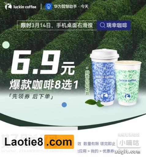 今天有6.9亓喝瑞幸咖啡(8选1)