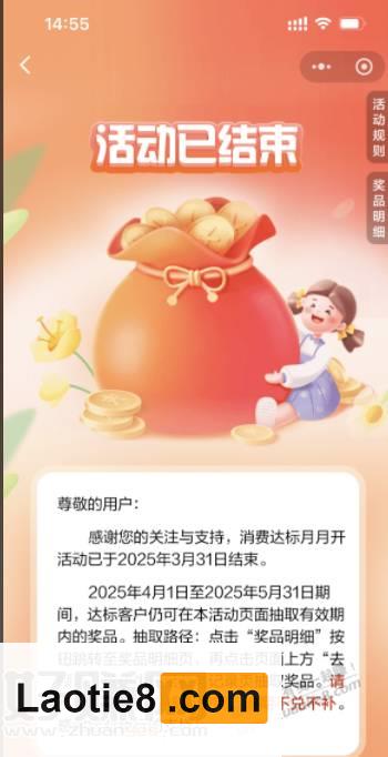建行月月交易活动结束了,参与过的来捡立减金了! 持家老铁 • 2025年4月16日 pm4:50 • 时时线报 • 阅读 11 淘宝捡漏群 点击这里加入本站QQ群、线报群、微信群一起交流参加各种活动项目和线报 #小程序://中国建设银行/oLfKIq2J8t2MDPI 活动已经结束,之前达标的,可以领取,过期就不能领了,捡钱! 点此加入老铁吧线报推送QQ群:1004763262 点击这里加入本站QQ群、线报群、微信群一起交流参加各种活动项目和线报 京东神车bug群