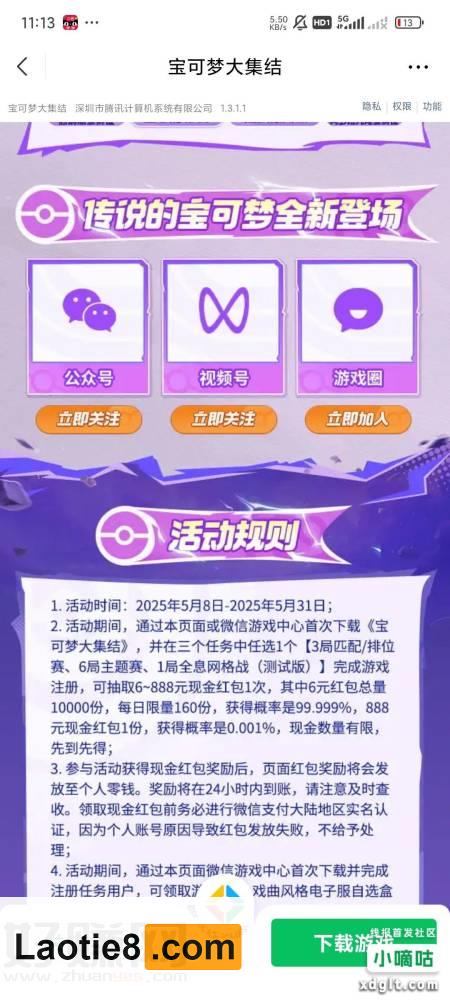 5.8号宝可梦链接,每日160份 持家老铁 • 2025年5月8日 am11:29 • 时时线报 • 阅读 8 淘宝捡漏群 点击这里加入本站QQ群、线报群、微信群一起交流参加各种活动项目和线报 5.8号宝可梦链接,每日160份https://game.weixin.qq.com/cgi-b … bhc/main_page?act_i 点此加入老铁吧线报推送QQ群:1004763262 点击这里加入本站QQ群、线报群、微信群一起交流参加各种活动项目和线报 京东神车bug群
