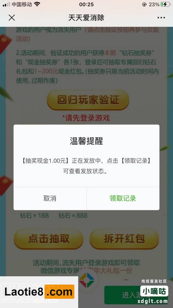 天天爱消除回归1元先登录再验证大于33关 持家老铁 • 2025年5月19日 am12:53 • 时时线报 • 阅读 5 淘宝捡漏群 点击这里加入本站QQ群、线报群、微信群一起交流参加各种活动项目和线报 天天爱消除回归1元先登录再验证大于33关https://game.weixin.qq.com/cgi-b … t__216903_main_page 点此加入老铁吧线报推送QQ群:1004763262 点击这里加入本站QQ群、线报群、微信群一起交流参加各种活动项目和线报 京东神车bug群