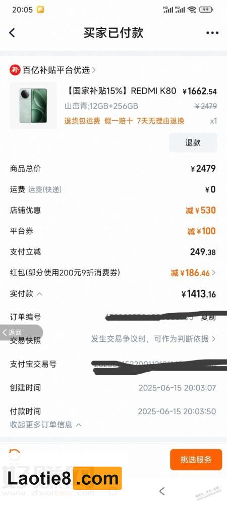 淘宝百亿补贴抢券技巧,红米k80国补加九折券加金刚券终于1413元拿下 持家老铁 • 2025年6月15日 pm8:50 • 时时线报 • 阅读 15 淘宝捡漏群 点击这里加入本站QQ群、线报群、微信群一起交流参加各种活动项目和线报 淘宝百亿补贴抢券技巧,红米k80国补加九折券加金刚券终于1413元拿下。 手机原价2479元,店铺优惠530元,88vip九折优惠186元,国补249元,金刚券100元。重点来了,金刚券到点就秒无,怎么办?假如是20 点此加入老铁吧线报推送QQ群:1004763262 点击这里加入本站QQ群、线报群、微信群一起交流参加各种活动项目和线报 京东神车bug群