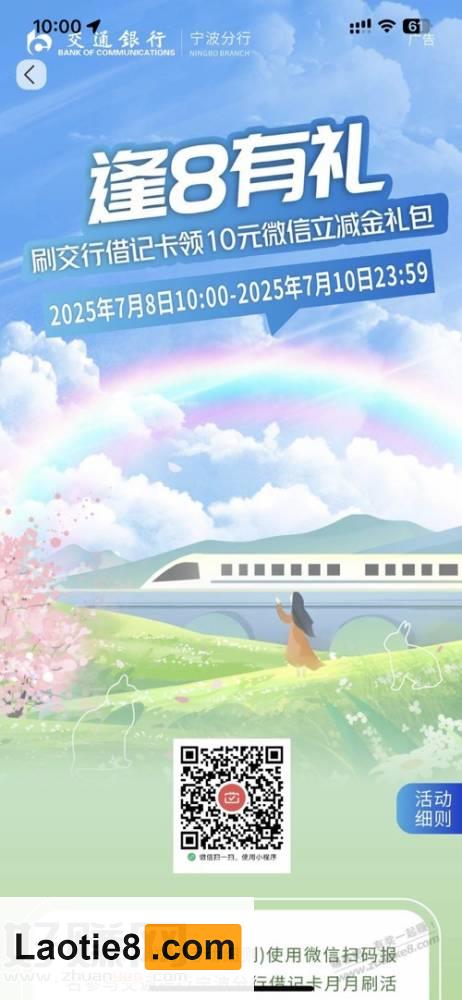 交通银行 宁波 10元微信立减。 持家老铁 • 2025年7月8日 am10:05 • 时时线报 • 阅读 6 淘宝捡漏群 点击这里加入本站QQ群、线报群、微信群一起交流参加各种活动项目和线报 rt 点此加入老铁吧线报推送QQ群:1004763262 点击这里加入本站QQ群、线报群、微信群一起交流参加各种活动项目和线报 京东神车bug群