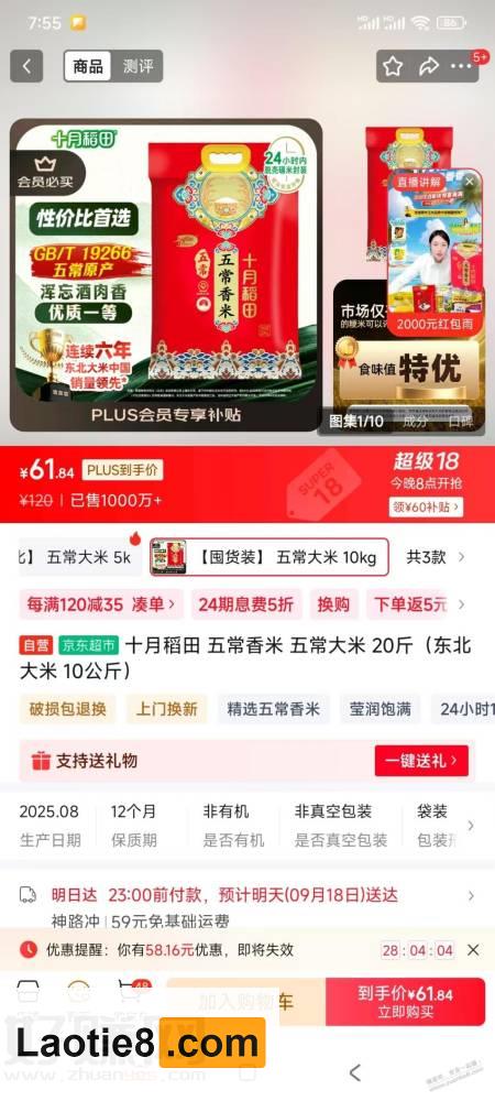 今晚20点,十月稻田五常香米20斤61.8元 持家老铁 • 2025年9月17日 pm8:03 • 时时线报 • 阅读 5 淘宝捡漏群 点击这里加入本站QQ群、线报群、微信群一起交流参加各种活动项目和线报 先领200-20券,【京东】https//3.cn/2-pVqvC7?jkl=@A6mHJ2Tghi35@ CA1565 「十月稻田 五常香米 20斤」点击链接直接打开 或者复制文案打开京东 点此加入老铁吧线报推送QQ群:1004763262 点击这里加入本站QQ群、线报群、微信群一起交流参加各种活动项目和线报 京东神车bug群