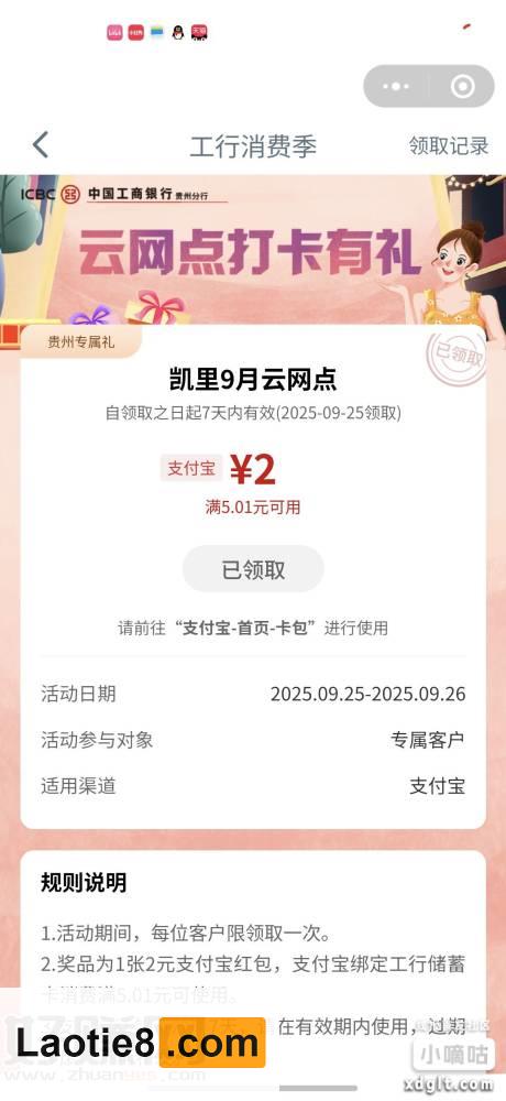 贵州工行服务小程序云网点2,应该是通用我司贵阳卡 持家老铁 • 2025年9月25日 pm12:37 • 时时线报 • 阅读 3 淘宝捡漏群 点击这里加入本站QQ群、线报群、微信群一起交流参加各种活动项目和线报 贵州工行服务小程序云网点2,应该是通用我司贵阳卡 点此加入老铁吧线报推送QQ群:1004763262 点击这里加入本站QQ群、线报群、微信群一起交流参加各种活动项目和线报 京东神车bug群