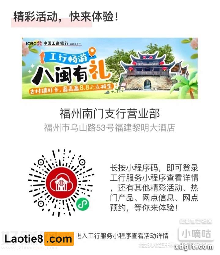 工行0.36-8.8立减金! 持家老铁 • 2025年9月26日 pm4:32 • 时时线报 • 阅读 12 淘宝捡漏群 点击这里加入本站QQ群、线报群、微信群一起交流参加各种活动项目和线报 工行0.36-8.8立减金!微信小程序依次点亮抽立减金mp://gwom5lH6DMmUjfa每天3场,9点,14点,18点,持续到月底。 点此加入老铁吧线报推送QQ群:1004763262 点击这里加入本站QQ群、线报群、微信群一起交流参加各种活动项目和线报 京东神车bug群