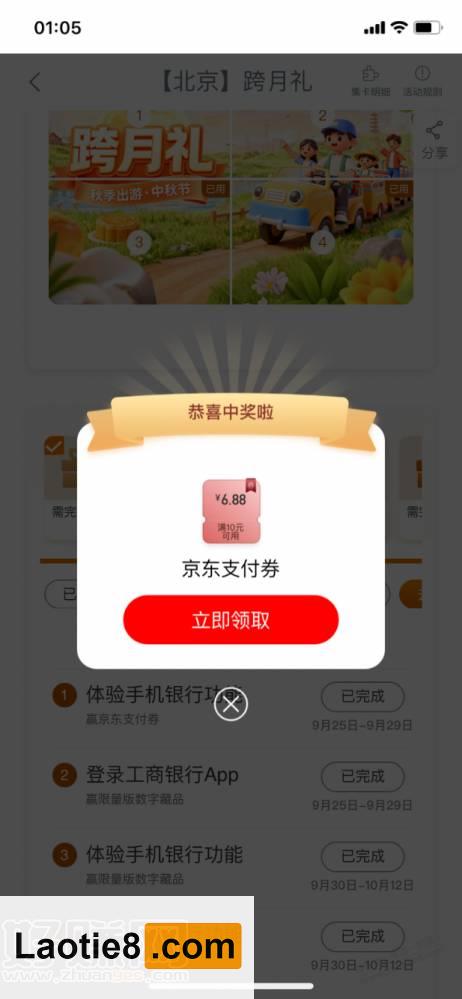 [ 工行北分 ] 京东支付券5.28元+6.88元~ 持家老铁 • 2025年10月1日 am1:13 • 时时线报 • 阅读 16 淘宝捡漏群 点击这里加入本站QQ群、线报群、微信群一起交流参加各种活动项目和线报 活动路径:任务中心——享活动——【北京】跨月礼 前几天按我线报领了5.28元的,继续浏览后2个任务,可再领5.28和6.88元 点此加入老铁吧线报推送QQ群:1004763262 点击这里加入本站QQ群、线报群、微信群一起交流参加各种活动项目和线报 京东神车bug群
