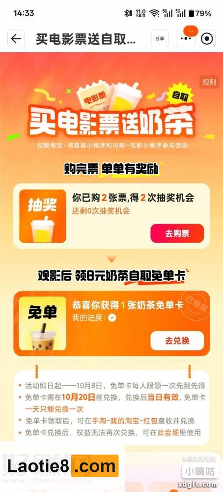 没事做下几单电影去领奶茶 持家老铁 • 2小时前 • 时时线报 • 阅读 3 淘宝捡漏群 点击这里加入本站QQ群、线报群、微信群一起交流参加各种活动项目和线报 没事做下几单电影去领奶茶 淘宝淘票票首页滚动栏 点此加入老铁吧线报推送QQ群:1004763262 点击这里加入本站QQ群、线报群、微信群一起交流参加各种活动项目和线报 京东神车bug群