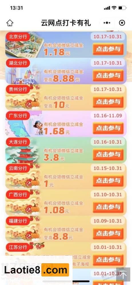 [ 工行 ]全国各地微信立减金,有新增,都进来看看~ 持家老铁 • 22小时前 • 时时线报 • 阅读 4 淘宝捡漏群 点击这里加入本站QQ群、线报群、微信群一起交流参加各种活动项目和线报 活动路径:#小程序://工行服务/Y75ElQMuwsIMTWu 各省市陆续上新,大家对照找下,我先领为敬,哈哈~ 点此加入老铁吧线报推送QQ群:1004763262 点击这里加入本站QQ群、线报群、微信群一起交流参加各种活动项目和线报 京东神车bug群
