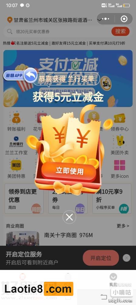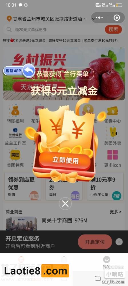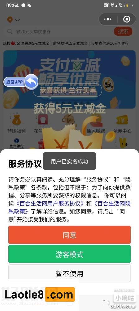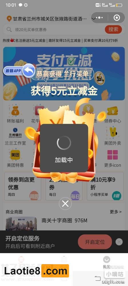 兰州银行最新领取5元立减金方法:下载百合生活app,点击领5 持家老铁 • 6小时前 • 时时线报 • 阅读 2 淘宝捡漏群 点击这里加入本站QQ群、线报群、微信群一起交流参加各种活动项目和线报 兰州银行最新领取5元立减金方法:下载百合生活app,点击领5元立减金按钮进去微信小程序,每个微信都要授权预留手机号码,点击实名,领取到了就Z.x,有时候不用实名也可以领,领不到Z.x,从app进就可以领,多微多领,领了5个v 点此加入老铁吧线报推送QQ群:1004763262 点击这里加入本站QQ群、线报群、微信群一起交流参加各种活动项目和线报 京东神车bug群