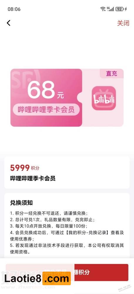 顺丰5999积分换B站季卡 持家老铁 • 3小时前 • 时时线报 • 阅读 2 淘宝捡漏群 点击这里加入本站QQ群、线报群、微信群一起交流参加各种活动项目和线报 点此加入老铁吧线报推送QQ群:1004763262 点击这里加入本站QQ群、线报群、微信群一起交流参加各种活动项目和线报 京东神车bug群