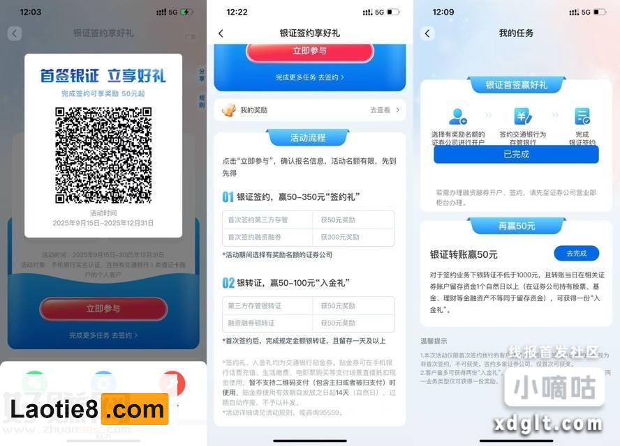 交行銀证首签领100-450亓 持家老铁 • 3小时前 • 时时线报 • 阅读 1 淘宝捡漏群 点击这里加入本站QQ群、线报群、微信群一起交流参加各种活动项目和线报 交行銀证首签领100-450亓绑定交行转账1001留存1天领50+50交行立减䋮去年领过66.66的应该还可以领50转账的 点此加入老铁吧线报推送QQ群:1004763262 点击这里加入本站QQ群、线报群、微信群一起交流参加各种活动项目和线报 京东神车bug群