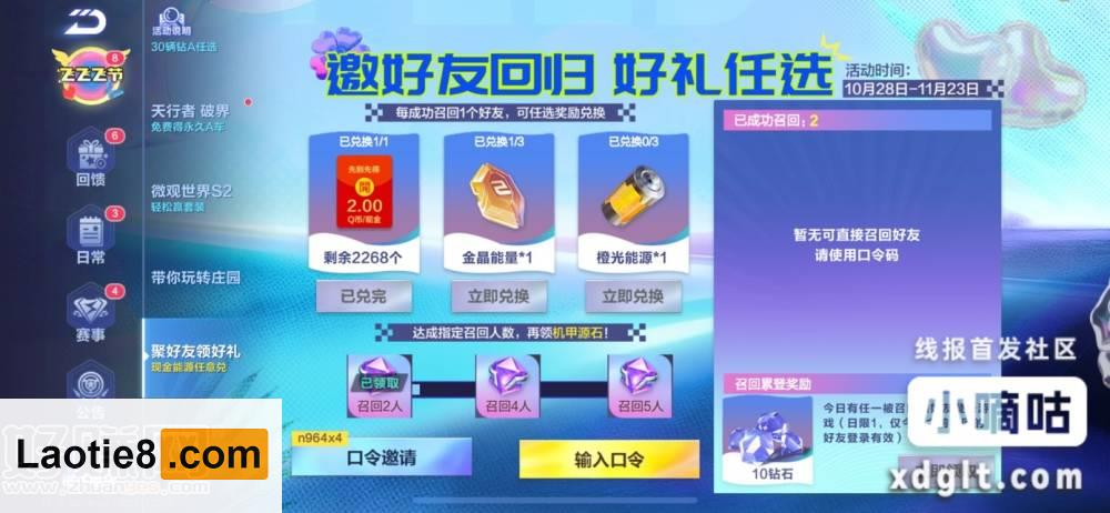 qq 飞车手游回归 2 毛 持家老铁 • 3小时前 • 时时线报 • 阅读 1 淘宝捡漏群 点击这里加入本站QQ群、线报群、微信群一起交流参加各种活动项目和线报 qq 飞车手游回归 2 毛活动在游戏里包还有很多流程就是分享口令码让回归号输入口令,1v 只能领一次 2 ,助力一次就够了多了也没用,回归号可以输入三次口令也就是能一次助力三个 v。看着繁琐其实挺简单的。 点此加入老铁吧线报推送QQ群:1004763262 点击这里加入本站QQ群、线报群、微信群一起交流参加各种活动项目和线报 京东神车bug群