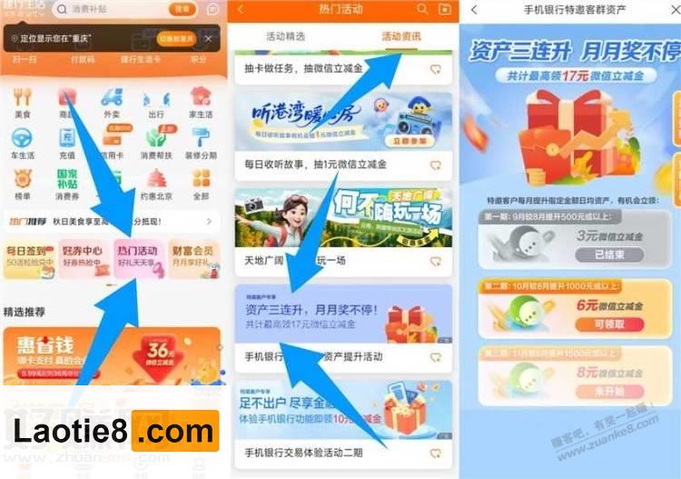 [ 建行 ]刚领6元微信立减金,速来~ 持家老铁 • 5小时前 • 时时线报 • 阅读 4 淘宝捡漏群 点击这里加入本站QQ群、线报群、微信群一起交流参加各种活动项目和线报 活动路径:建行生活-热门活动-活动资讯下拉如图一 点此加入老铁吧线报推送QQ群:1004763262 点击这里加入本站QQ群、线报群、微信群一起交流参加各种活动项目和线报 京东神车bug群