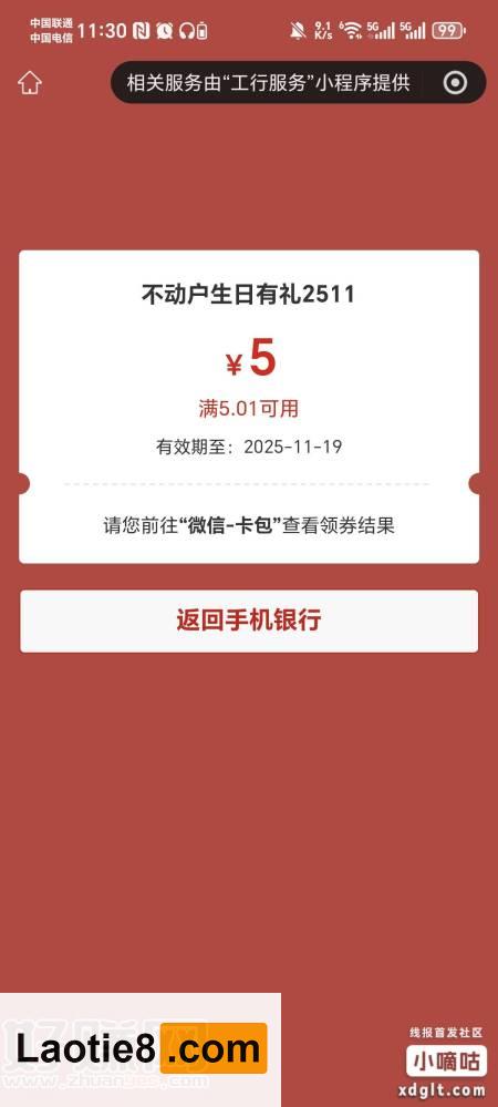 本月生日的,随时去工行APP任务里看有没有推送5立减金 持家老铁 • 1小时前 • 时时线报 • 阅读 1 淘宝捡漏群 点击这里加入本站QQ群、线报群、微信群一起交流参加各种活动项目和线报 本月生日的,随时去工行APP任务里看有没有推送5立减金 点此加入老铁吧线报推送QQ群:1004763262 点击这里加入本站QQ群、线报群、微信群一起交流参加各种活动项目和线报 京东神车bug群