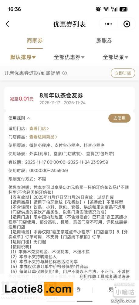 去年一年下过30单大于10的订单的 有送一张霸王茶姬免单券 持家老铁 • 1小时前 • 时时线报 • 阅读 0 淘宝捡漏群 点击这里加入本站QQ群、线报群、微信群一起交流参加各种活动项目和线报 去年一年下过30单大于10的订单的 有送一张霸王茶姬免单券 点此加入老铁吧线报推送QQ群:1004763262 点击这里加入本站QQ群、线报群、微信群一起交流参加各种活动项目和线报 京东神车bug群