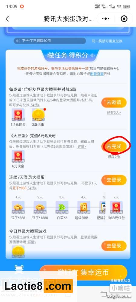 有多余Q币的可以玩掼蛋充6给6红包,新用户或30天未登录过的才有这个红包页面,要点去完成,从他给的下载链接下载。游戏里商城充值6块选择用Q币充,充完回活动页自动弹红包